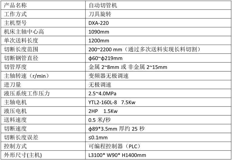 自動切管機(jī)產(chǎn)品特性及參數(shù)