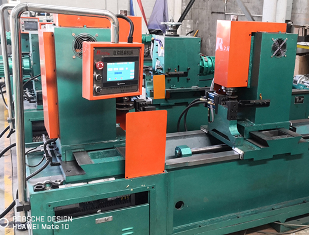 3、調(diào)刀便捷高效。主軸箱頂部只有一個手輪,通過其正旋/反旋,兩個刀軸同步聯(lián)動,即可同步調(diào)整上下兩個面加工量的大小,自動對中,加工面深淺一致,故生產(chǎn)效率高,即生產(chǎn)不同型號托輥軸時,可快速將設(shè)備調(diào)整就位。